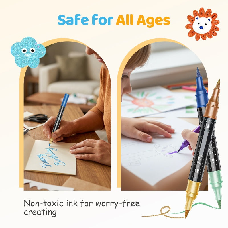 🛡️ Encre Sûre et Non Toxique – Créativité Sans Risque Formulée à base d'encre acrylique aqueuse, sans acide et non toxique. Pour les enfants comme pour les adultes, ces marqueurs garantissent une expérience créative en toute sécurité.