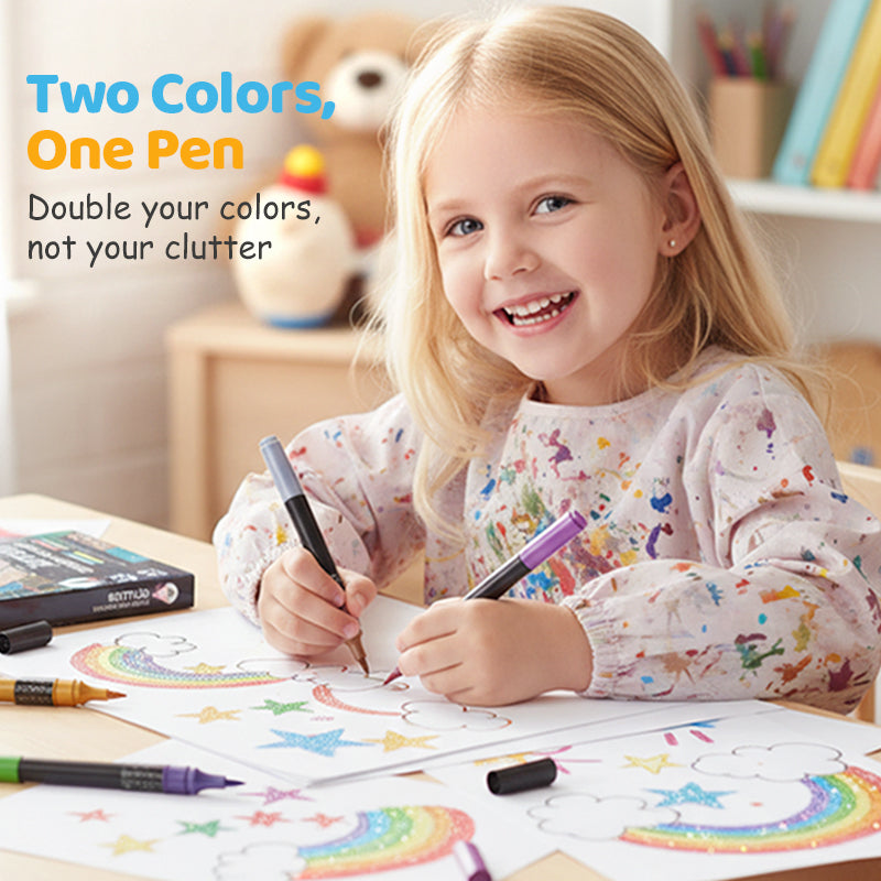 🌈 Deux Couleurs en Un Stylo – Palette Doublée, Encombrement Réduit Chaque stylo renferme deux couleurs complémentaires, doublant instantanément vos options. Passez facilement de l'une à l'autre pour des dégradés et des œuvres dynamiques.